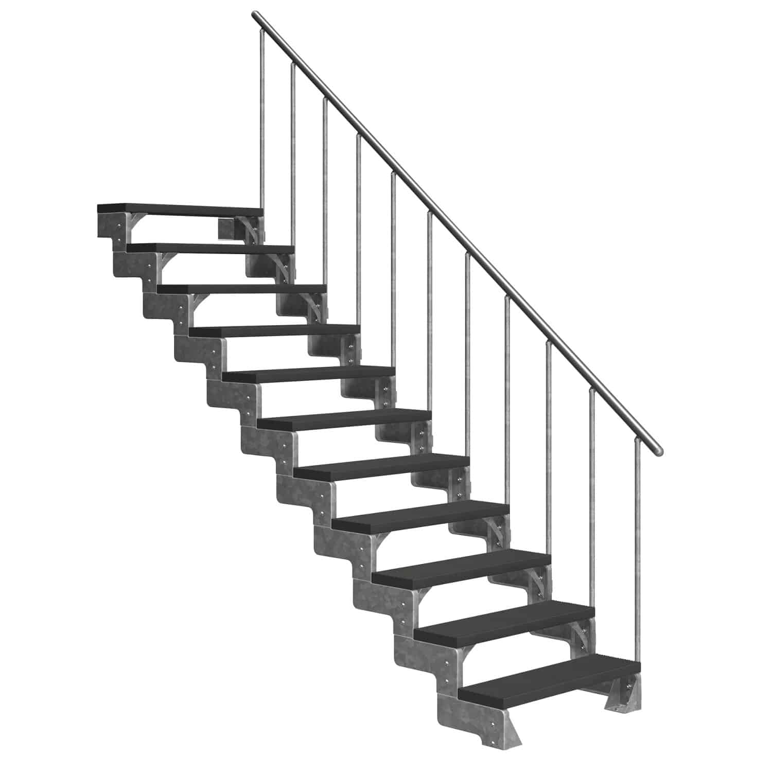 Gestalten Sie Ihren Außenbereich mit Stil und Eleganz – mit der Dolle Außentreppe Gardentop 11 Trimax-Stufen 100 cm Anthrazit + Alu-Geländer. Diese hochwertige Außentreppe vereint Funktionalität, Langlebigkeit und modernes Design, um Ihren Garten, Ihre Terrasse oder Ihren Balkon aufzuwerten. Erleben Sie, wie diese Treppe nicht nur den Zugang zu Ihrem Haus erleichtert, sondern auch zu einem echten Blickfang wird.