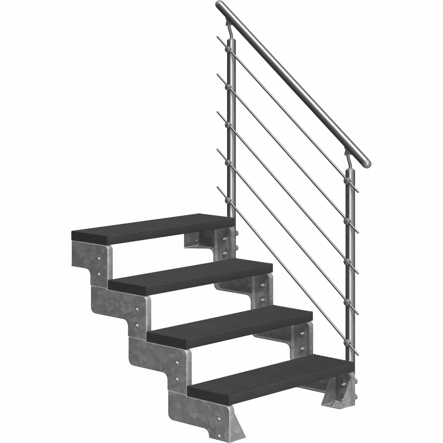Die DOLLE Außentreppe Gardentop 4 ist in einem eleganten Anthrazit gehalten, der sich harmonisch in jede Gartenlandschaft einfügt. Die moderne Farbgebung verleiht Ihrem Garten einen stilvollen Touch und macht die Treppe zum echten Hingucker.