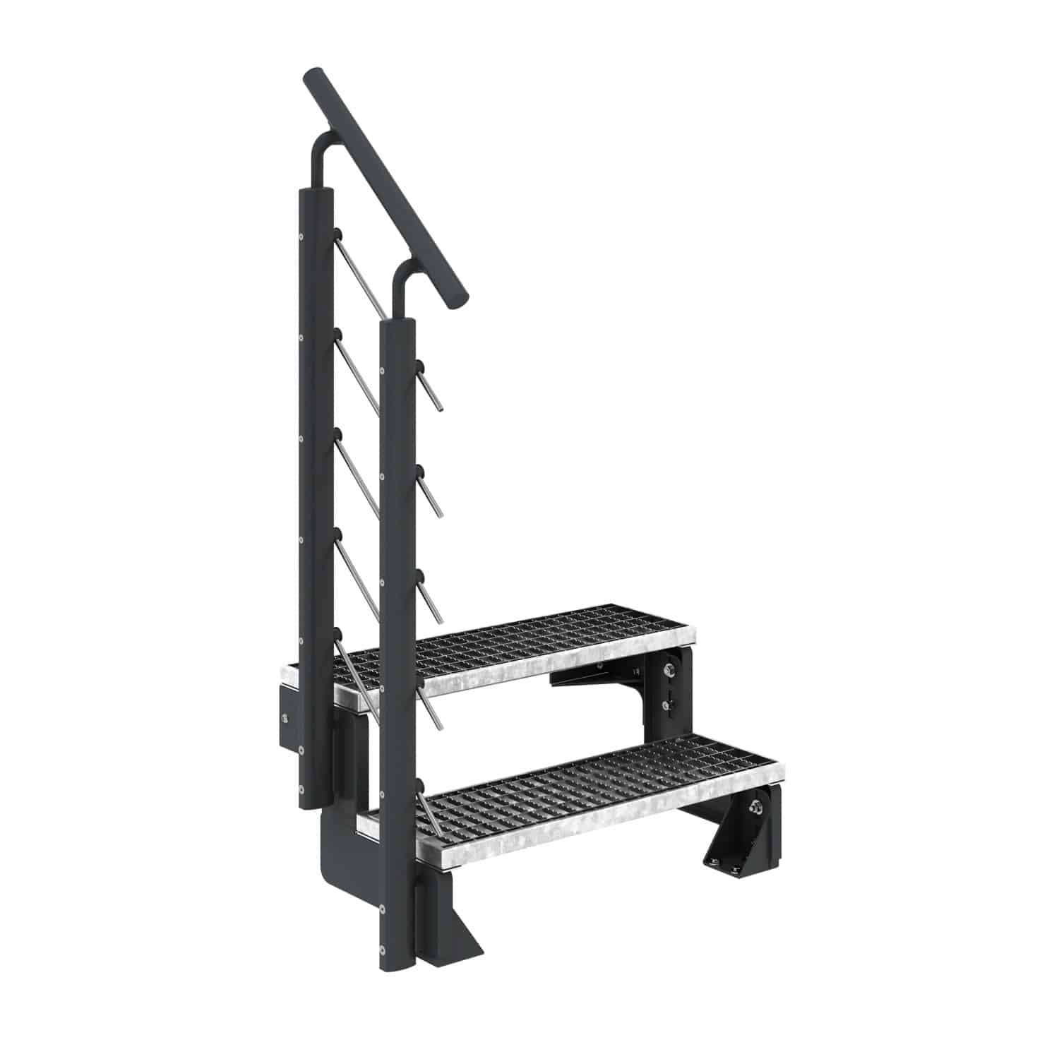Hier finden Sie alle wichtigen technischen Daten und Details zur Dolle Gardentop Außentreppe in Anthrazit mit 2 Gitterroststufen und 80 cm Breite inklusive Geländer: