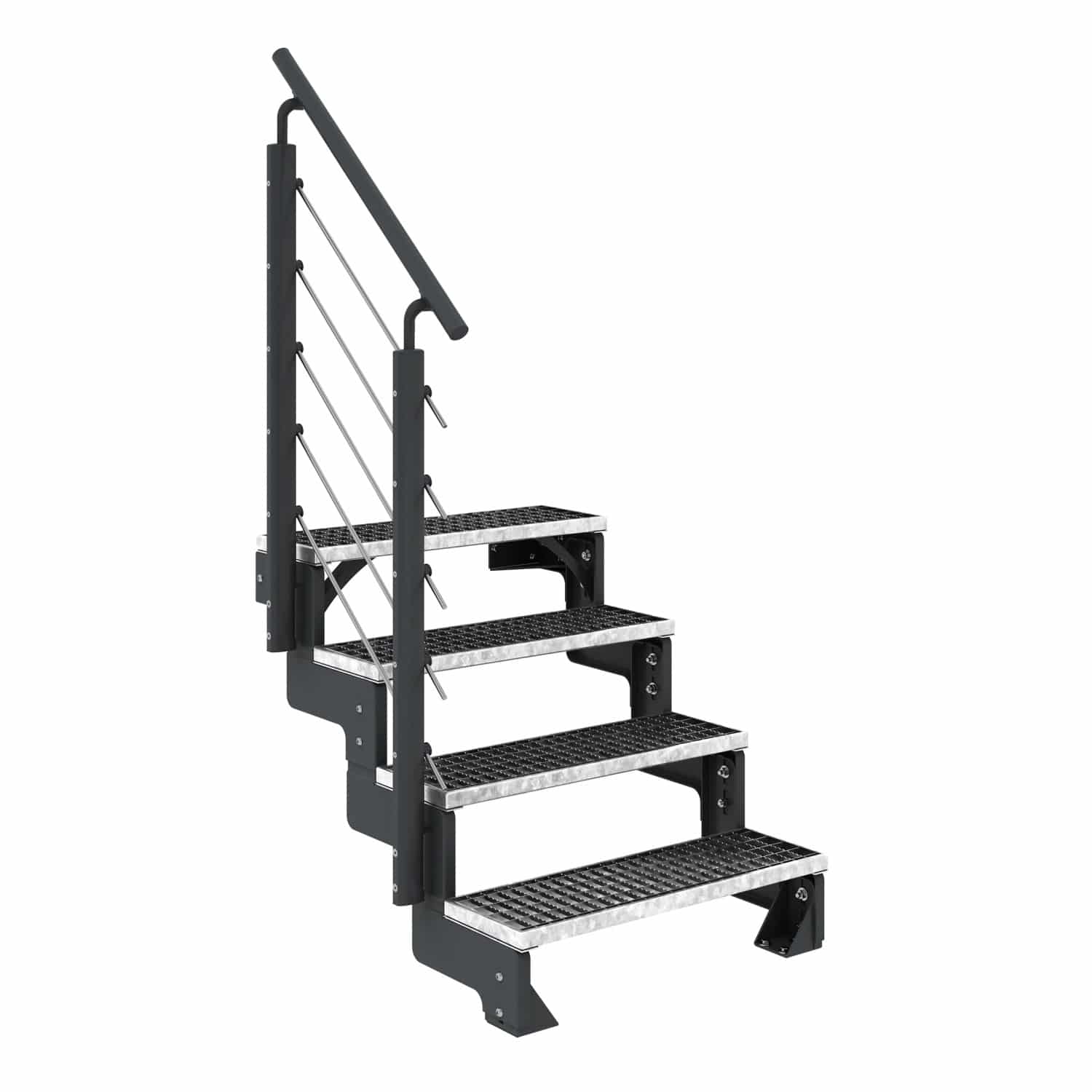 - Hohe Stabilität und Langlebigkeit: Dank der robusten Konstruktion und der hochwertigen Materialien ist die Treppe besonders widerstandsfähig gegen Witterungseinflüsse und Korrosion.