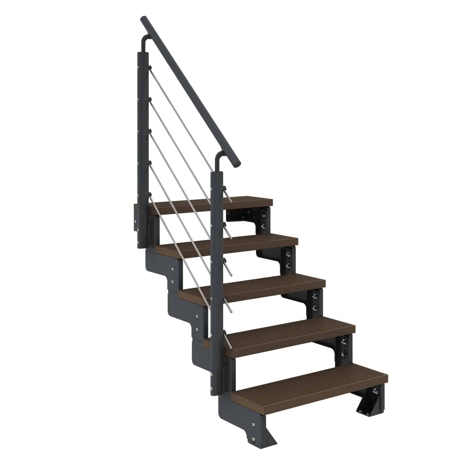 Die Dolle Außentreppe Gardentop in Anthrazit mit 5 Stufen und 80 cm Breite in Braun inklusive Geländer ist die perfekte Lösung, um Ihren Garten, Ihre Terrasse oder Ihren Balkon stilvoll und sicher zu erreichen. Diese hochwertige Außentreppe vereint Funktionalität mit modernem Design und wird zum Blickfang in Ihrem Außenbereich. Erleben Sie den Komfort und die Ästhetik, die diese Treppe Ihrem Zuhause verleiht!