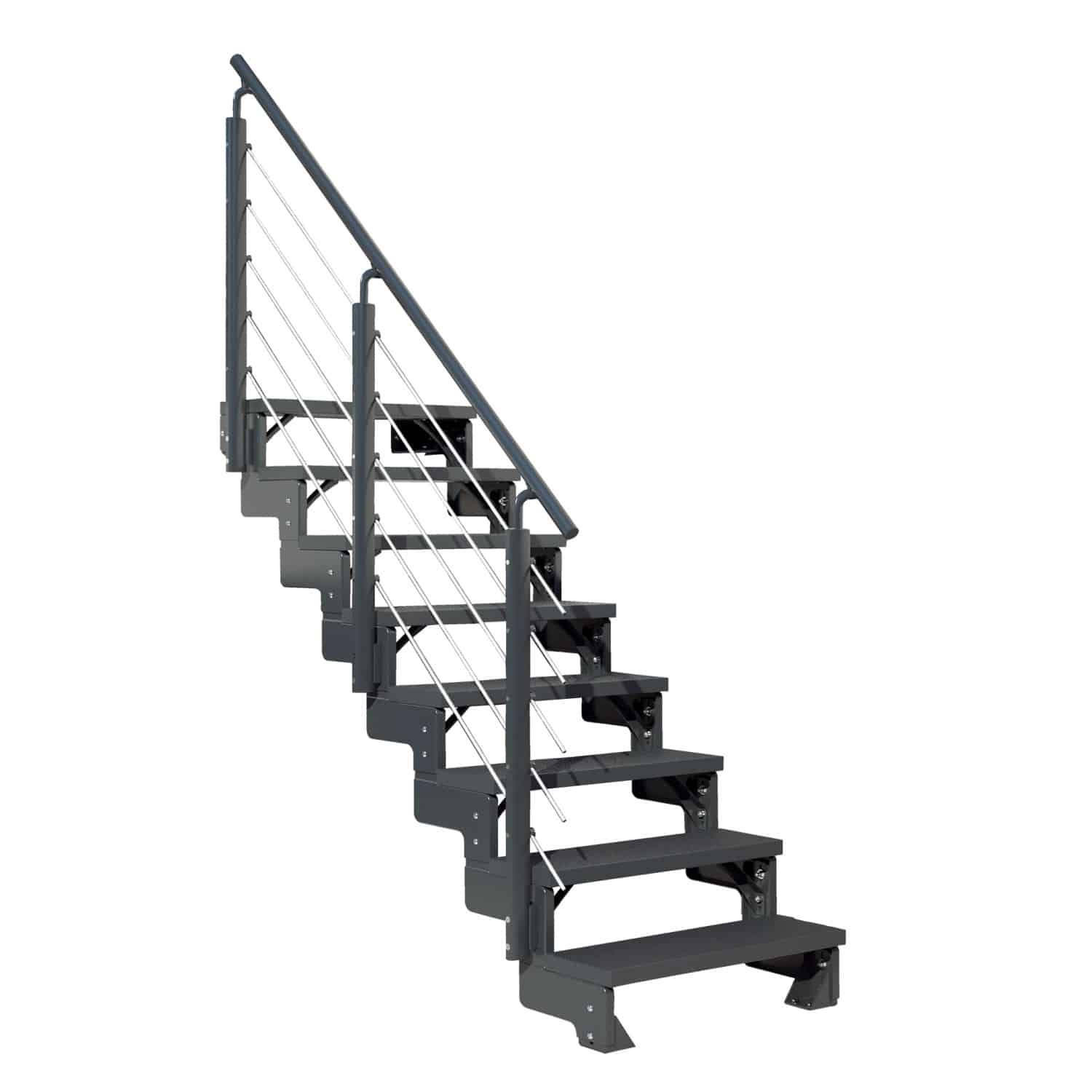Verwandeln Sie Ihren Garten in eine stilvolle Oase mit der Dolle Außentreppe Gardentop in elegantem Anthrazit! Diese hochwertige Außentreppe ist nicht nur funktional, sondern auch ein echter Blickfang, der Ihrem Außenbereich das gewisse Etwas verleiht. Mit ihren 8 Stufen und einer Breite von 100 cm bietet sie einen komfortablen und sicheren Aufstieg in Ihren Garten oder auf Ihre Terrasse. Das mitgelieferte Geländer sorgt für zusätzliche Sicherheit und unterstreicht das ansprechende Design.