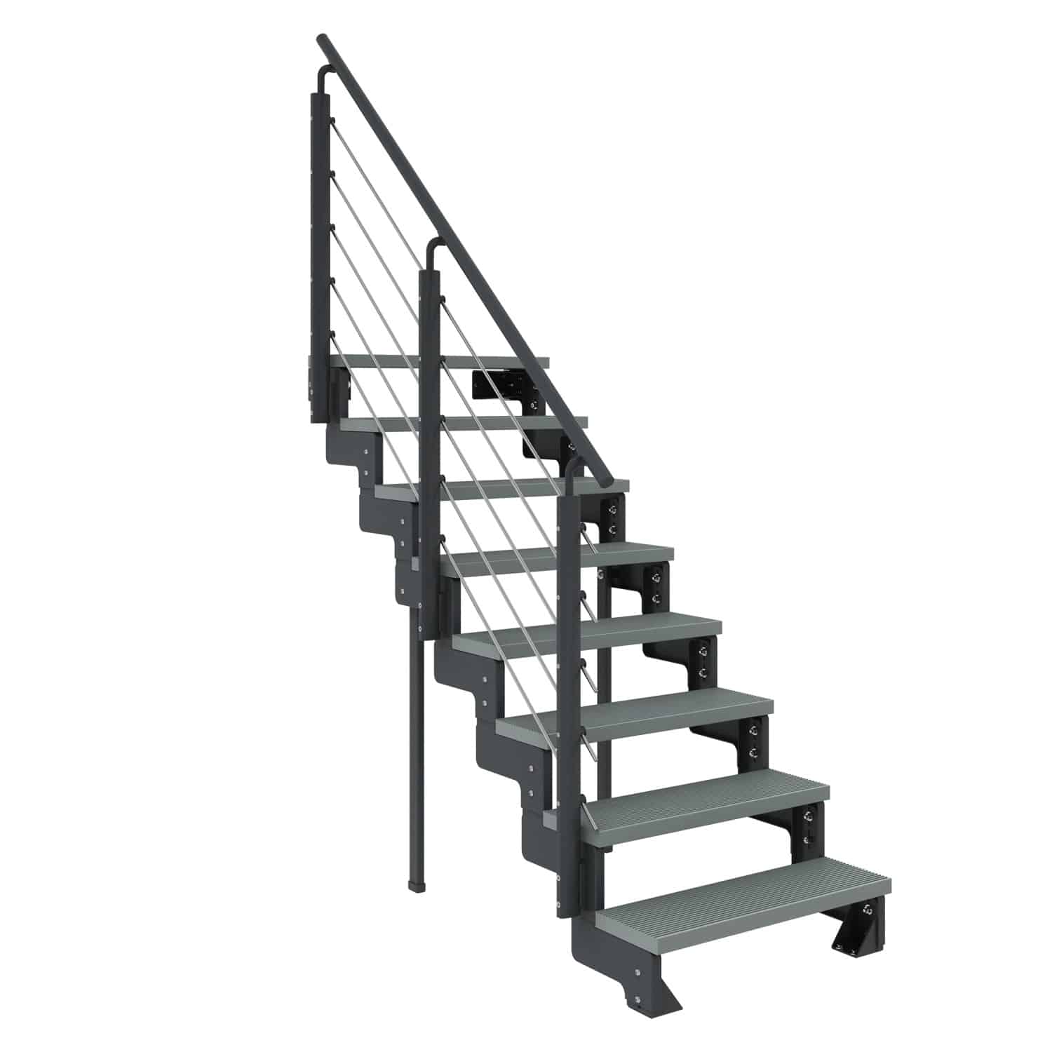 - Pulverbeschichtung: Schützt die Oberfläche vor Kratzern und Korrosion und verleiht der Treppe ein edles Aussehen.