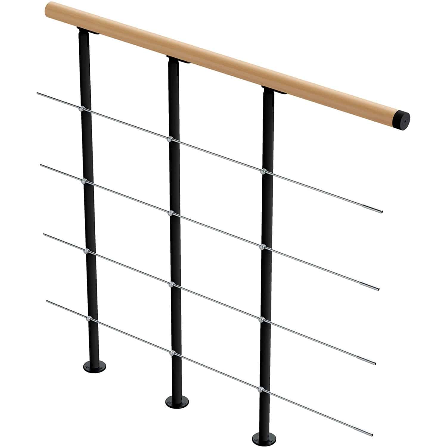 Das Geländer besteht aus robustem Stahl, der in einem eleganten Anthrazitton pulverbeschichtet ist. Diese Beschichtung ist nicht nur optisch ansprechend, sondern auch äußerst widerstandsfähig gegen Kratzer und Abnutzung. Der Handlauf ist aus massivem Buchenholz gefertigt, das aus FSC®-zertifizierter Forstwirtschaft stammt. Das Holz ist glatt geschliffen und mit einem schützenden Lack versehen, der die natürliche Maserung hervorhebt und das Holz vor Feuchtigkeit und Schmutz schützt.