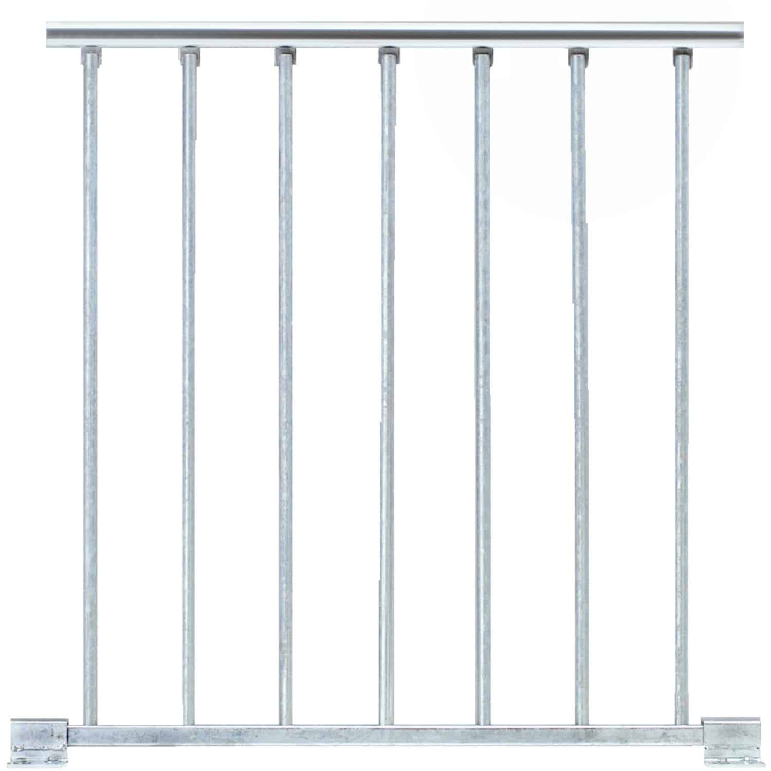 Material: Das Geländer besteht aus feuerverzinktem Stahl, der eine hervorragende Witterungsbeständigkeit und Langlebigkeit gewährleistet. Es ist resistent gegen Rost, UV-Strahlung und andere Umwelteinflüsse, sodass Sie lange Freude daran haben werden.