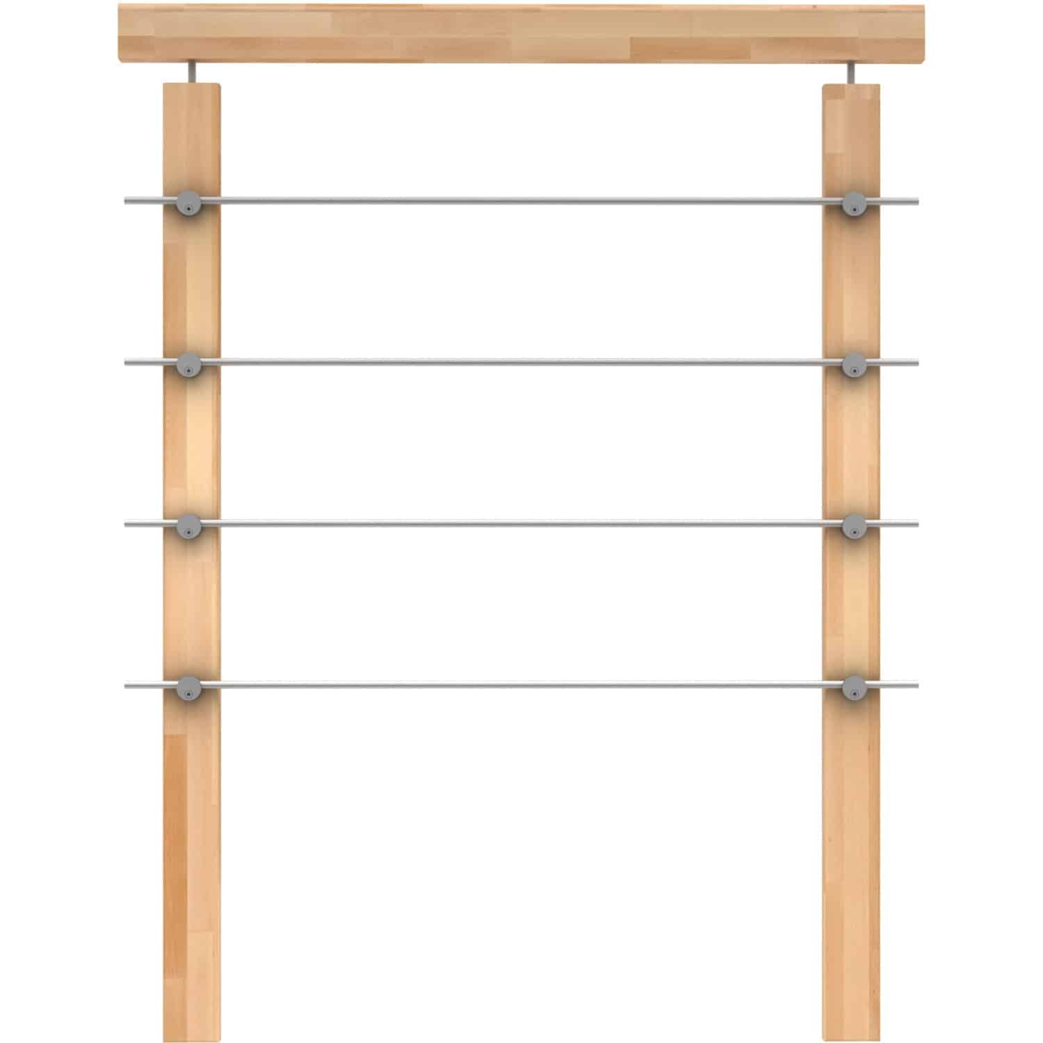 Die Edelstahlrohre des Geländers verleihen diesem einen modernen Look und bilden einen eleganten Kontrast zum warmen Buchenholz. Edelstahl ist nicht nur optisch ansprechend, sondern auch äußerst pflegeleicht und langlebig. Die glatte Oberfläche lässt sich einfach reinigen und behält ihren Glanz über Jahre hinweg.