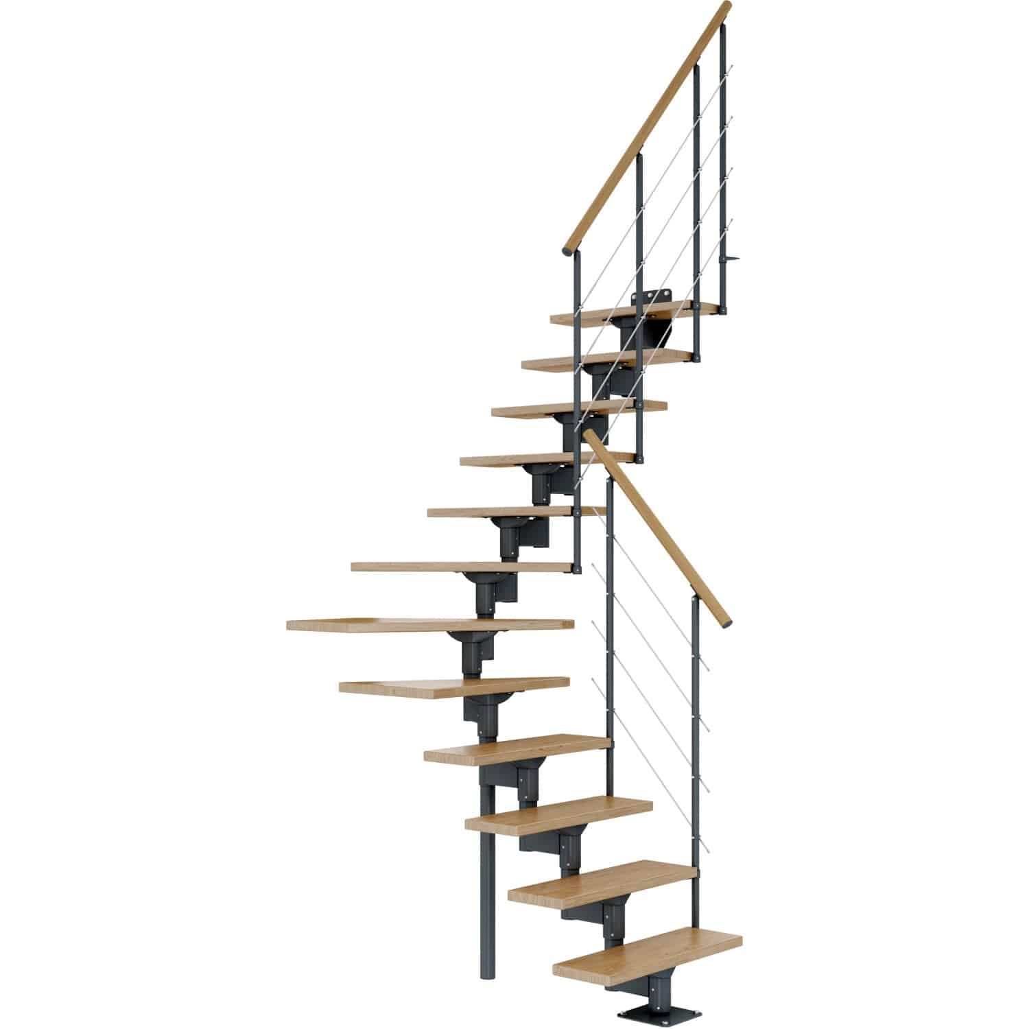 Die Dolle Mittelholmtreppe Boston besticht durch ihre klare Linienführung und die harmonische Kombination aus Eiche und anthrazitfarbenem Metall. Die 1/4 gewendelte Formgebung sorgt für eine platzsparende und gleichzeitig elegante Lösung, die sich optimal in moderne Wohnräume integriert. Egal ob im Neubau oder bei der Renovierung – die Boston Treppe verleiht Ihrem Zuhause einen Hauch von Exklusivität.