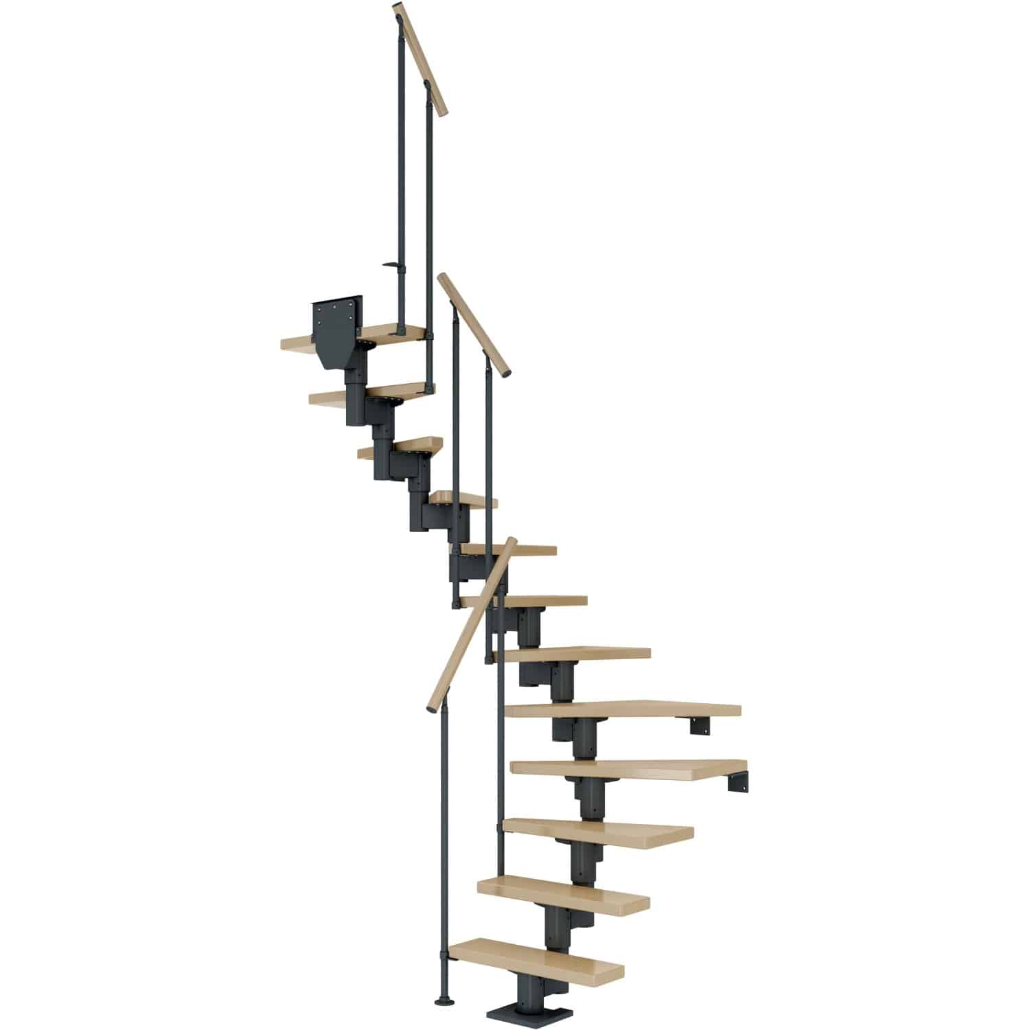 Die Dolle Mittelholmtreppe Dublin Ahorn Anthrazit GH bis 270 cm 1/2 gewendelt mit 75 cm Breite ist eine exzellente Wahl für alle, die Wert auf Qualität, Design und Flexibilität legen. Diese Treppe vereint auf elegante Weise modernes Aussehen mit hoher Funktionalität und bietet Ihnen so eine optimale Lösung für Ihr Zuhause. Sie ist nicht nur eine praktische Verbindung zwischen zwei Etagen, sondern auch ein stilvolles Designelement, das Ihren Wohnraum aufwertet.