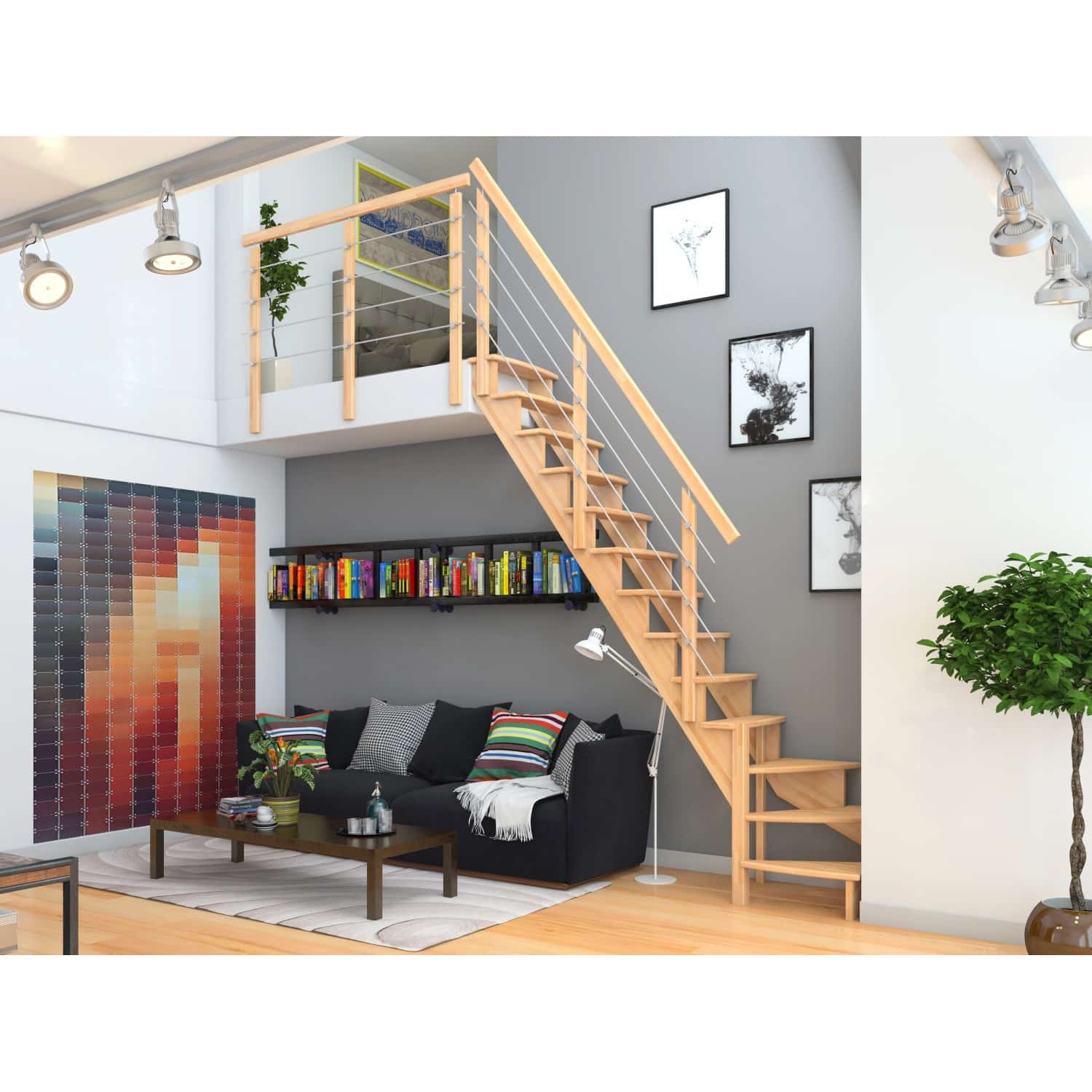 Die Dolle Raumspartreppe Lyon Buche Edelstahlrohrgeländer 75 cm 1/4-gewendelt U/L ist die perfekte Wahl für alle, die eine platzsparende, elegante und sichere Treppe suchen. Bestellen Sie jetzt und verwandeln Sie Ihr Zuhause in einen Ort, an dem Funktionalität und Design Hand in Hand gehen!
