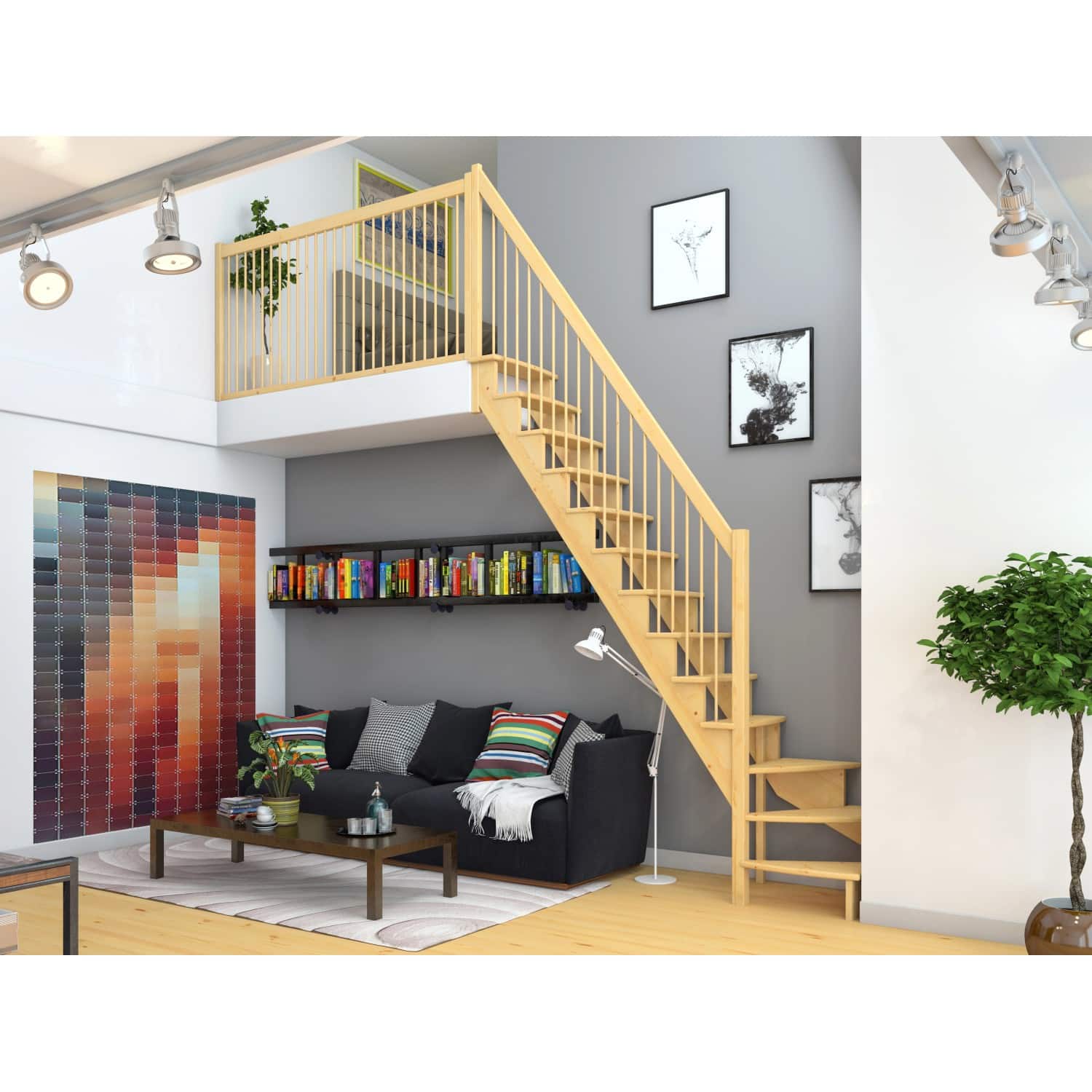 Die unbehandelte Oberfläche des Kiefernholzes bietet Ihnen die Möglichkeit, die Treppe ganz nach Ihren Wünschen zu gestalten. Ob Sie sie natürlich belassen, ölen, wachsen oder lackieren möchten – Ihrer Kreativität sind keine Grenzen gesetzt. Passen Sie die Farbe und das Finish der Treppe an Ihren individuellen Einrichtungsstil an und schaffen Sie ein harmonisches Gesamtbild.