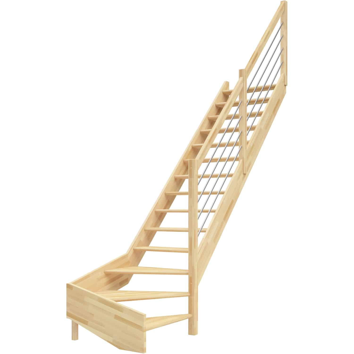 Die 1/4-Wendelung der Treppe sorgt dafür, dass die Steigung auf einer kürzeren Strecke überwunden wird, was zu einer steileren, aber dennoch komfortablen Steigung führt. Dies ist besonders vorteilhaft, wenn der Raum, in dem die Treppe installiert werden soll, begrenzt ist.