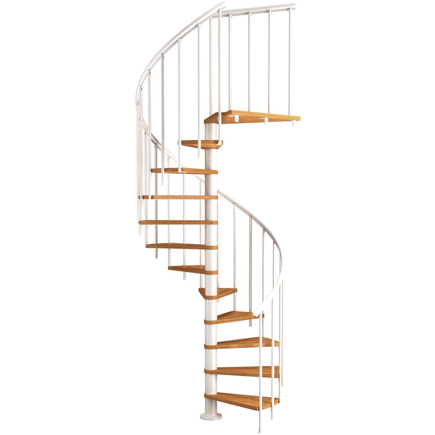 Standardmäßig können Sie mit den 11 Stufen der Dolle Spindeltreppe Montreal eine Geschosshöhe von bis zu 282 cm erreichen. Durch den Kauf von optionalen Zusatzstufen, können Sie diese Höhe aber noch erweitern. Bitte beachten Sie, dass die maximale Höhe durch die Bauart der Treppe begrenzt ist.