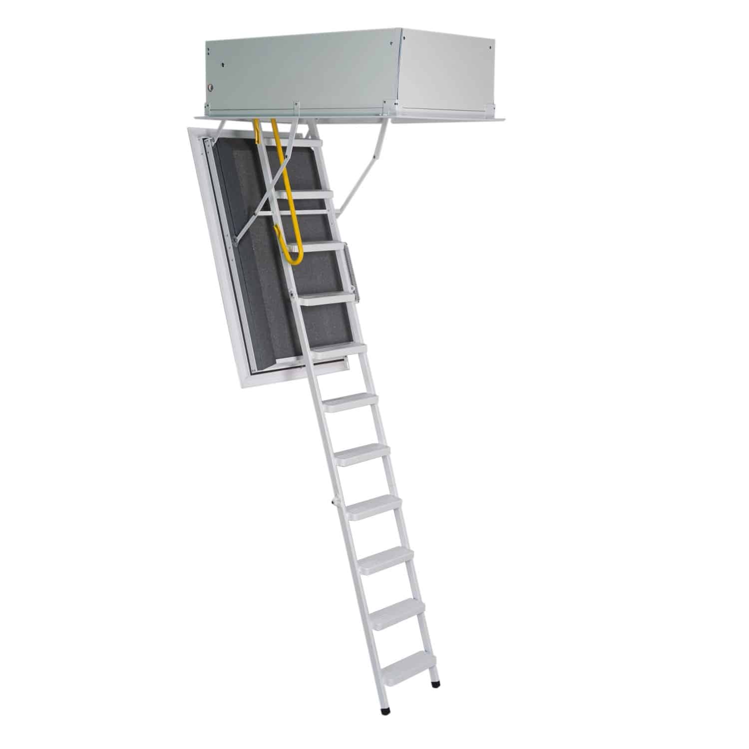 - Platzsparendes Design: Die Treppe verschwindet bei Nichtgebrauch platzsparend in der Decke.