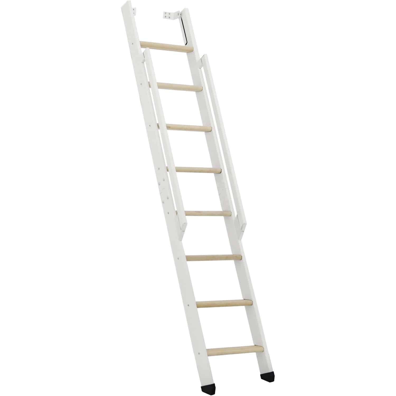 Die intelligente Konstruktion der Minka Raumspartreppe Strong Fichte Weiß ermöglicht eine optimale Raumausnutzung. Die Stufen sind so angeordnet, dass sie wenig Platz beanspruchen, aber dennoch ein bequemes Auf- und Absteigen ermöglichen. Die Treppe ist für eine Geschosshöhe von 199 cm ausgelegt und verfügt über 8 Stufen. Die Stufen sind besonders breit, wodurch ein sicherer Gang gewährleistet wird.