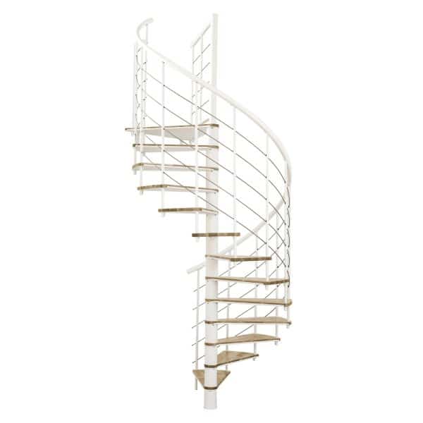 Die Spindeltreppe Fusion von Minka ist die perfekte Lösung, wenn Sie auf der Suche nach einer platzsparenden und gleichzeitig stilvollen Treppenlösung sind. Mit ihrem Durchmesser von 140 cm fügt sie sich harmonisch in unterschiedliche Raumkonzepte ein und bietet dabei einen komfortablen Aufstieg. Die Kombination aus robustem Eichenholz und dem strahlenden Weiß der Stahlkonstruktion verleiht jedem Raum eine helle und freundliche Atmosphäre. Diese Treppe ist nicht nur ein funktionales Element, sondern ein echtes Designobjekt, das Ihren Wohnraum aufwertet.