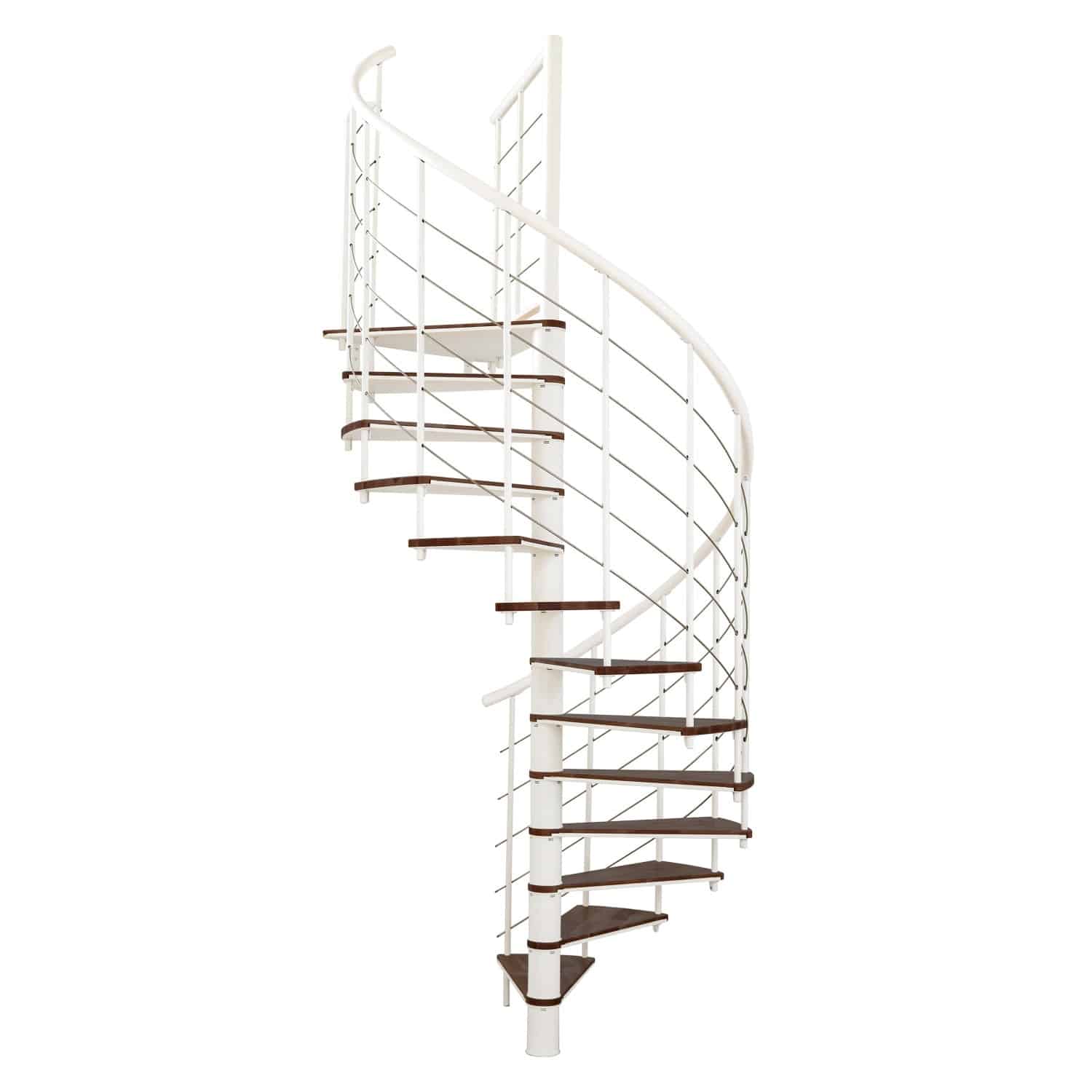 Die Minka Spindeltreppe Fusion Ø 140 cm in Walnuss Weiß ist die perfekte Wahl für alle, die eine stilvolle und platzsparende Treppenlösung suchen. Mit ihrem eleganten Design und der hochwertigen Verarbeitung fügt sie sich nahtlos in jeden Wohnraum ein und wird zum Blickfang. Ob für den Zugang zum Dachboden, zur Galerie oder zur nächsten Etage – die Fusion Spindeltreppe vereint Ästhetik und Funktionalität auf höchstem Niveau. Die harmonische Kombination aus warmem Walnuss-Ton und strahlendem Weiß verleiht Ihrem Zuhause einen Hauch von Luxus und Modernität.
