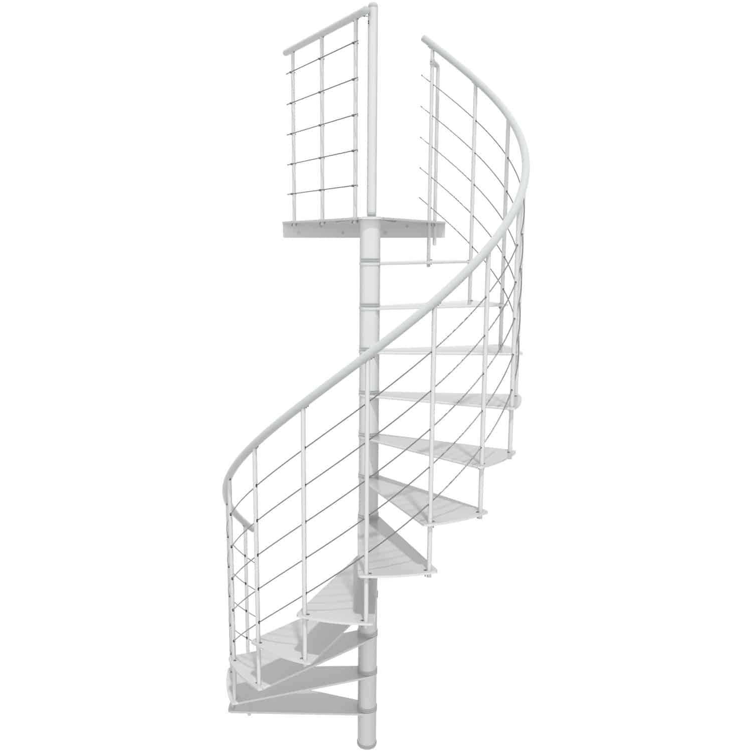 - Spindel: Die zentrale Spindel aus Stahl sorgt für Stabilität und trägt das Gewicht der Treppe.