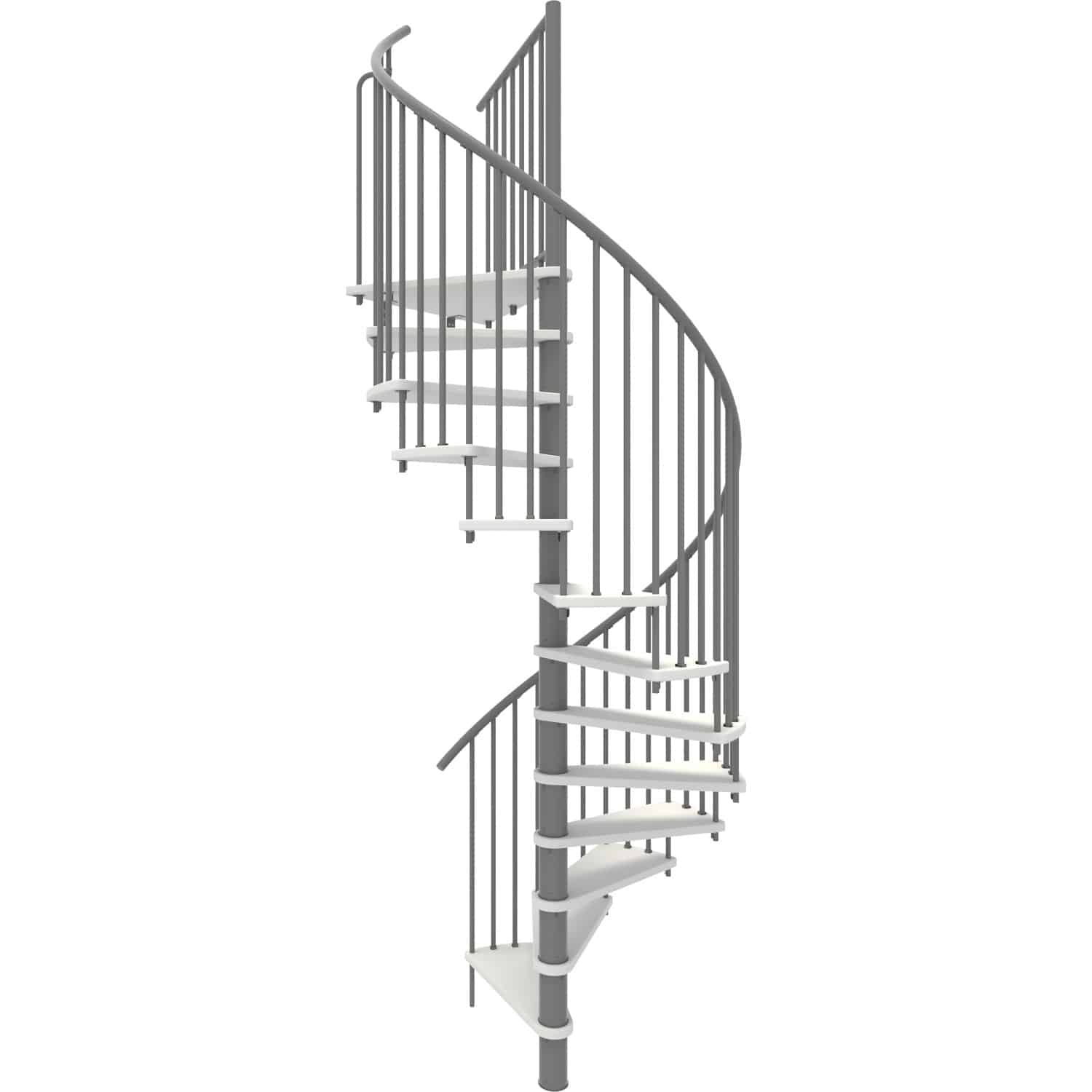 Träumen Sie von einer Treppe, die nicht nur funktional ist, sondern auch ästhetisch ansprechend? Die Minka Spindeltreppe Spiral Smart in Weiß Grau mit einem Durchmesser von 120 cm und einer Geschosshöhe bis zu 305,5 cm ist die ideale Lösung für alle, die Wert auf Design, Qualität und Komfort legen. Diese Spindeltreppe vereint modernes Design mit praktischer Funktionalität und lässt sich dank ihrer durchdachten Konstruktion einfach montieren. Genießen Sie den Komfort und die Eleganz, die diese Treppe in Ihr Zuhause bringt.
