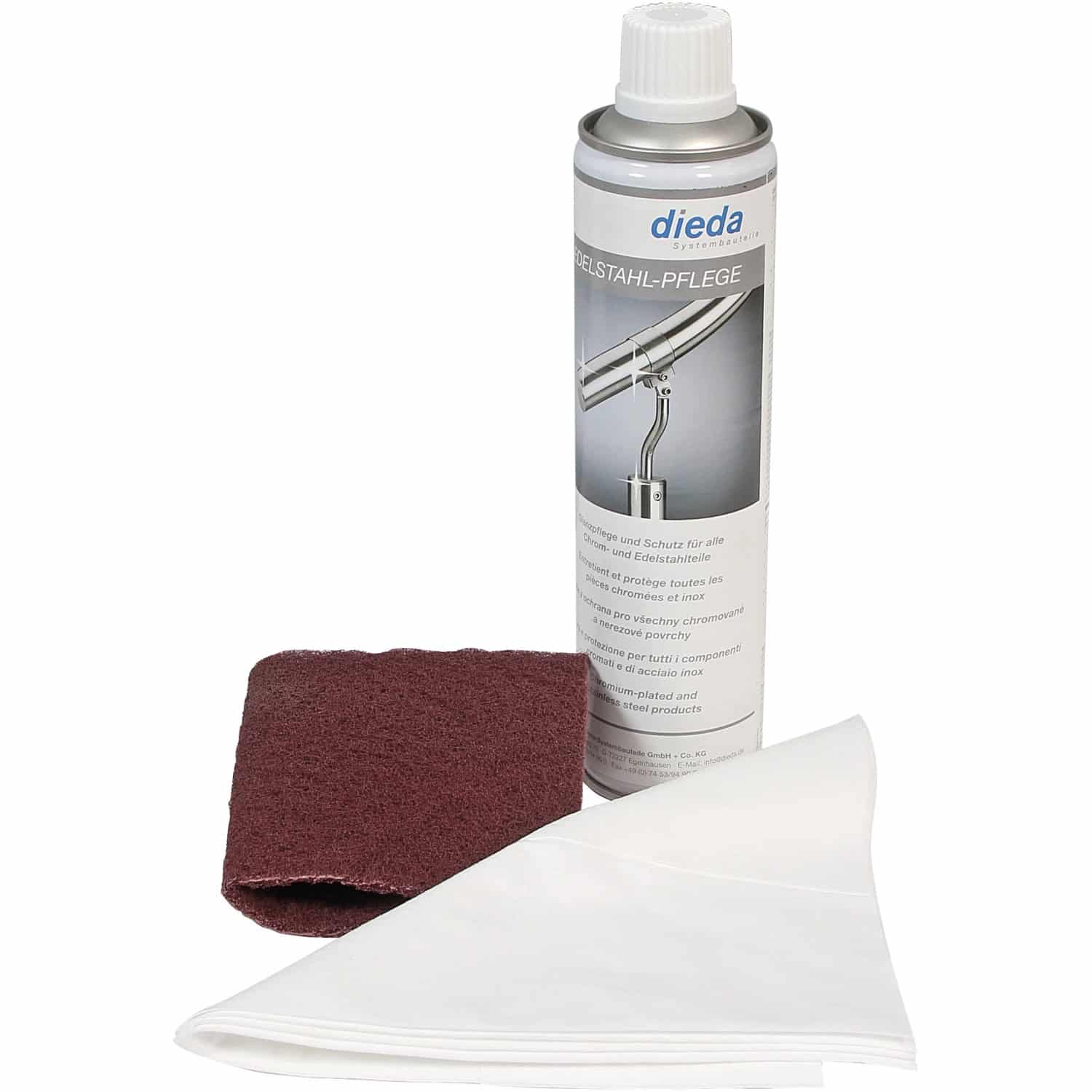 Unser Set beinhaltet sorgfältig ausgewählte Produkte, die perfekt aufeinander abgestimmt sind und Ihnen eine umfassende Pflege Ihrer Edelstahl-Treppe ermöglichen: