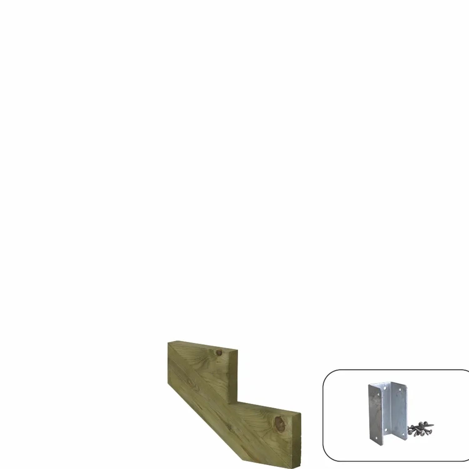 Im Lieferumfang enthalten sind zwei Treppenwangen für 2 Stufen mit einer Stufentiefe von 25 cm sowie die benötigten Beschläge für die Montage. Eine detaillierte Montageanleitung ist ebenfalls enthalten.
