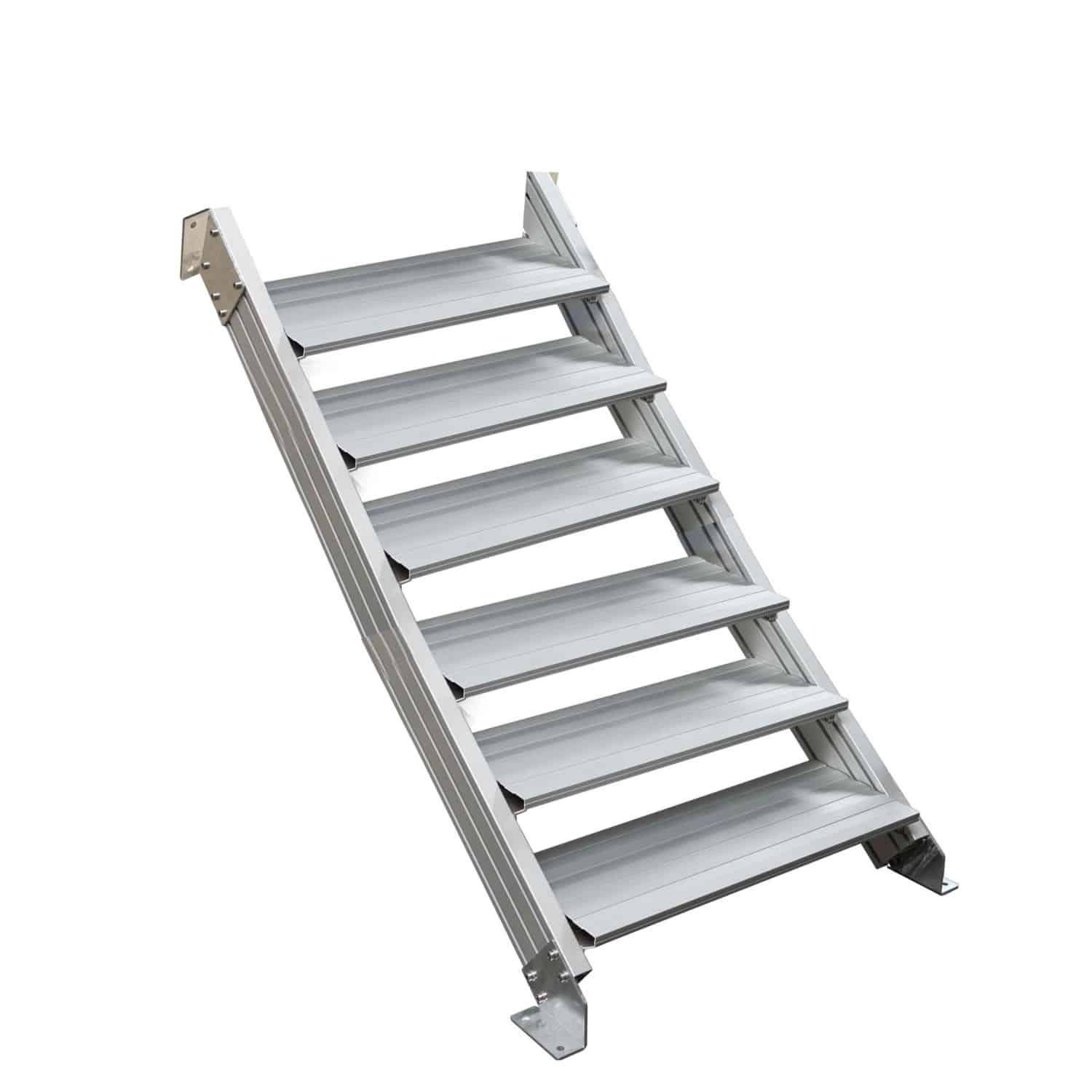 - Robustes Material: Das hochwertige Aluminium ist witterungsbeständig, rostfrei und garantiert eine lange Lebensdauer der Treppe.